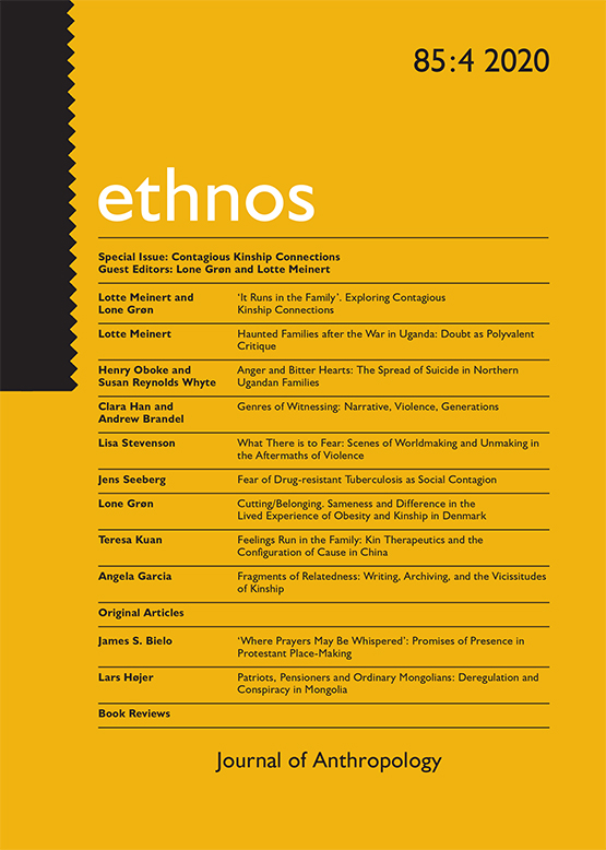 2020. “Looking Away,” in “Gestures of Care and Recognition” ed. Lauren Cubellis, special issue, Cultural Anthropology.2019. “What There Is to Fear”, in “It Runs in the Family: Exploring Contagious Kinship Connections” ed. Lotte Meinert and Lone Grøn, special issue, Ethnos (published online, July 2019): 1-18.